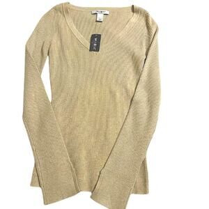 WHBM V-Neck Pullover Sweater in Metallic Gold – NWT Size Small