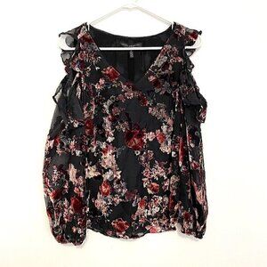 WHBM WHITE HOUSE BLACK MARKET Floral Velvet Burnout Cold Shoulder Blouse PETITE