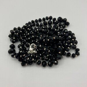 WHBM White House Black Market Black & Silver Crystal Long Beaded Necklace 52”