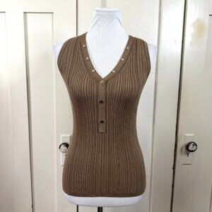 WHBM White House Black Market Brown Medium Knit Ribbed Fitted Tank Top Gold Stud