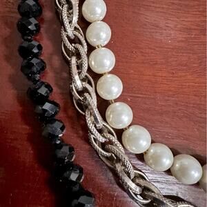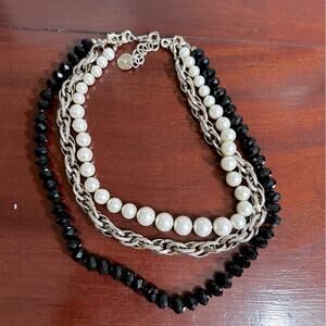 WHBM White House Black Market Chunky Necklace Gold tone Chain Faux Pearl Jewelry