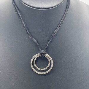 WHBM White House Black Market Double Circle Pendant Black Cord Necklace Beach