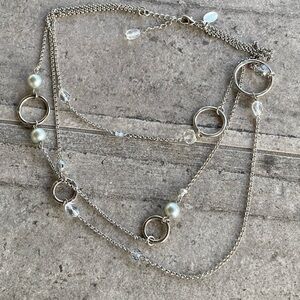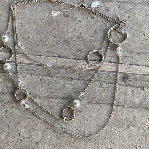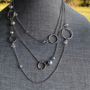 WHBM White House Black Market Necklace Silver Tone Three Strands Asymmetric