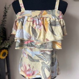WHBM White House Black Market Pastel Yellow Floral Cold Shoulder Top XS