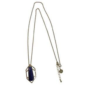 WHBM White House Black Market Pendant Necklace Natural Stone Sodalite Gold Tone