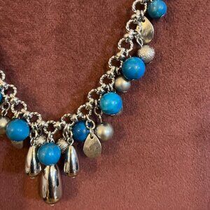 WHBM White House Black Market Silver Turquoise Blue Necklace and Bracelet Set