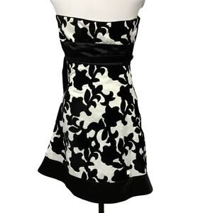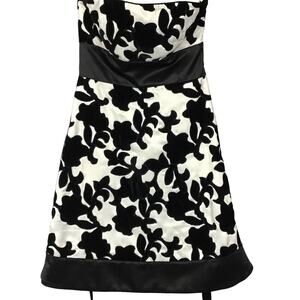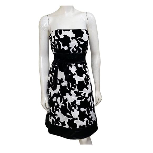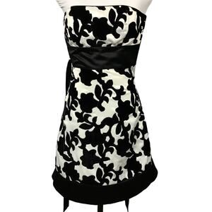 WHBM White House Black Market Strapless Satin Velvet Black White Mini Dress sz 0