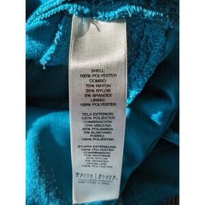 The WHBM Teal Lace Fit Flare Knee Length Dress in size 4 is a stunning formal dress perfect for weddings, parties, or cocktail events. The dress features a sleeveless design with a scoop neckline and a zip closure. Made from lace and rayon material, this knee-length dress with a fit and flare style is machine washable and suitable for summer, fall, and spring seasons. The dress is accented with a zipper detail and comes in a beautiful blue color, making it a chic and elegant choice for any special occasion.