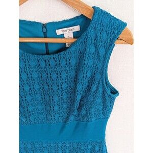 WHBM White House Black Market TEAL Lace Fit Flare Knee Length Dress Size 4