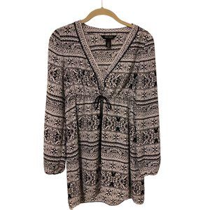 WHBM White House black market Mini Dress Coverup SZ 2 Floral Geo V Neck