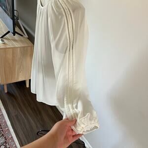 WHBM White Poet Peasant Style Crochet Blouse Sz 14 Boho Work Office Career