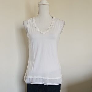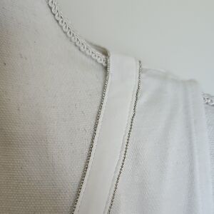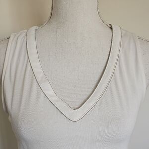 Elevate your wardrobe with this elegant white sleeveless V-neck top. Perfect for any occasion, this versatile piece offers both comfort and style. (g2)