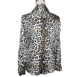 WHBM Wm’s Sz 4 All Over Leopard Print Button Down Silk Stretch Button Down Shirt