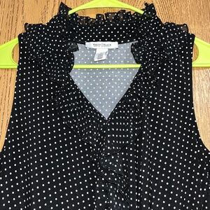 WHBM Women’s Black and White Polka Dot Ruffle Sleeveless Blouse Sz-L