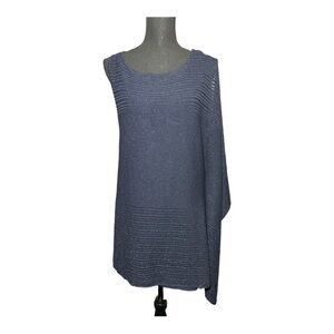 WHBM Women’s Blue Top Large One Shoulder Neckline Festive Preppy NWT