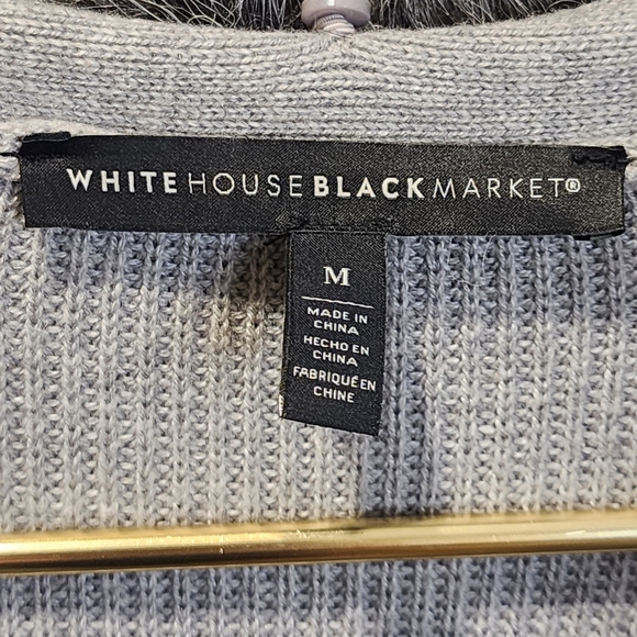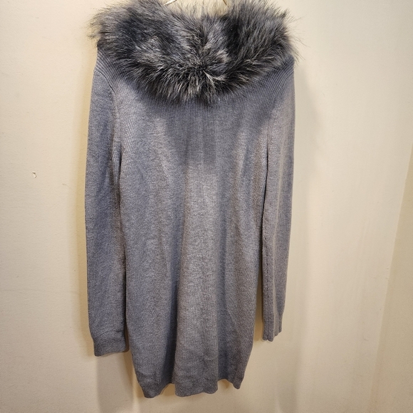 WHBM Women's Button Down Gray Cardigan with Faux Fur Collar Size M