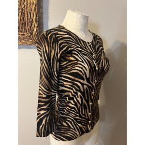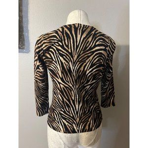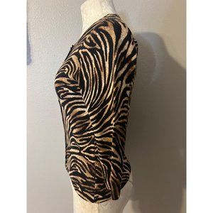 WHBM Womens Cardigan Sweater Black Brown Small S Stretch Animal Print