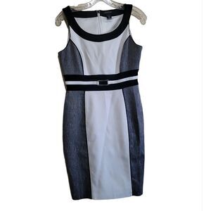 NWOT White House Black Market Women's ColorBlock White Black Gray Sleeveless Midi Dress Sz 4. The Dress is in excellent condition.