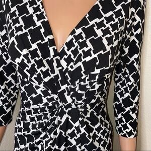 WHBM Women's Elbow Sleeve Geometric Print Wrap Dress black & white SZ 4