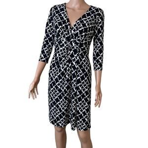 WHBM Women's Elbow Sleeve Geometric Print Wrap Dress black & white SZ 4