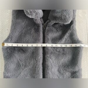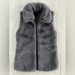 WHBM Womens Faux Fur Super Soft Vest Size Small Gray Collared Full Zip Like New