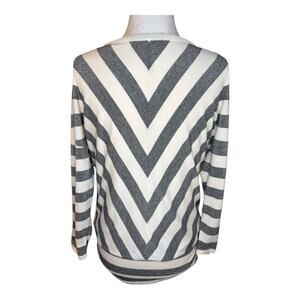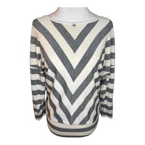 WHBM Women's Gray Striped Pullover Sweater Size Small Chevron Stripes