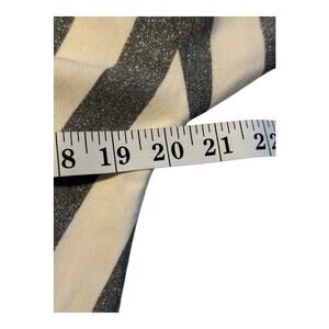 Wrap yourself in the chic elegance of the WHBM Gray Striped Pullover Sweater. This women's sweater, in size small, features a stylish chevron stripe pattern that adds a touch of sophistication to any outfit. Crafted from a blend of rayon, metallic, spandex, nylon, and polyester, it offers a comfortable fit with a hint of shimmer. Perfect for casual outings, office wear, or a cozy evening with friends. Hand wash only to maintain its beauty. This pre-owned piece is ready to become a staple in your wardrobe.
