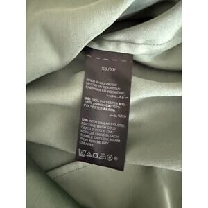 WHBM Women's Green Satin V-neck button-up Shirt Blouse Top XS Holiday Glam Xmas