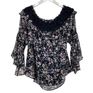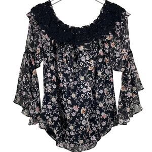 WHBM Womens Lace Floral Crochet Trim Off The Shoulder Lined Blouse M