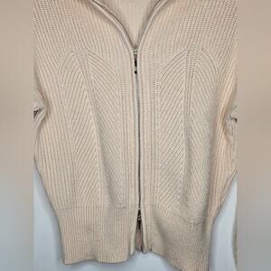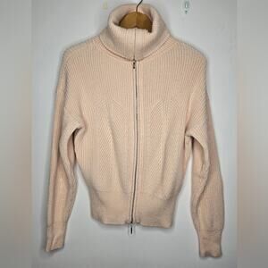 WHBM Womens Light Peach Sweater Long Sleeve Collared 2 Way Zipper Size M