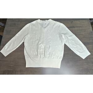 WHBM Womens Sequin Cardigan Sweater Ivory Medium 3/4 Sleeves Zip up