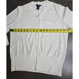 White House Black Market Women's Sequin Full Zip Cardigan Sweater Ivory with 3/4 length Sleeves.