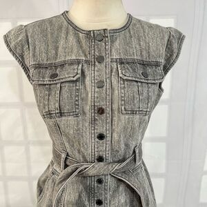 WHBM Women's Cap Sleeve Snap Button Front Gray Acid Wash Belted Denim Mini Dress Size 00