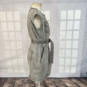 WHBM Women's Snap Button Front Gray Acid Wash Belted Denim Mini Dress Size 00