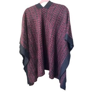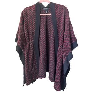 WHBM Wool blend red black zig zag open front poncho style sweater XS/S