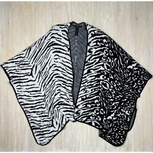 WHBM Wrap Shawl Animal Prints Ruana Wool Cashmere Blend Chic Cozy Poncho OS