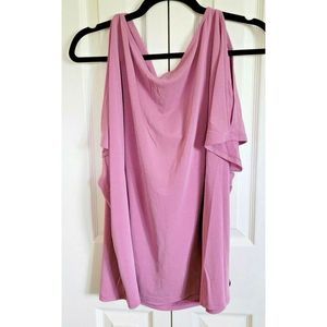WHBM XL Knit Top Cold Shoulder Short Sleeve Lilac Stretch Drape Neck Top