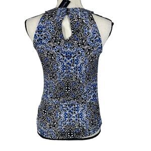 WHBM X-Small Halter Top Geometric Stretch Pleated Sleeveless Keyhole Ruched Side