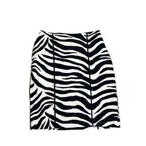 WHBM Zebra Animal Print High Rise Mini Pencil Skirt Stretch Black White Size 2