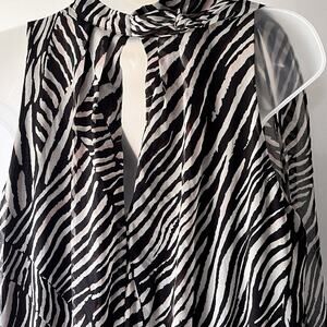 WHBM Zebra Print Faux Wrap Choker Neck Ruffle Skirt Midi Dress Size 12