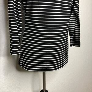 WHBM black white contrasting striped knit top.  Pullover style with round neckline.   Midlength sleeves.  Size Medium.  Excellent preowned condition.  Minor wash wear.