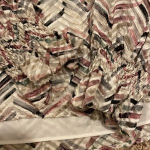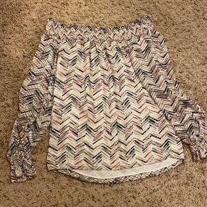 The gorgeous silky White House Black Market XXS off the shoulder blouse is fully lined in the body. Matches well with white, off-white, pink, black bottoms. Can be worn in summer and even winter.