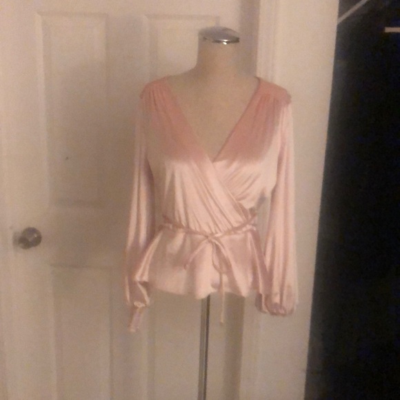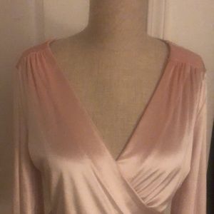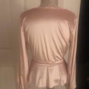 WHBM velvet pale pink blouse. Blouse has a wrap around the waist tie. Beautiful detailing. Only wore a couple times in like new condition. No tags