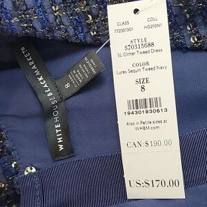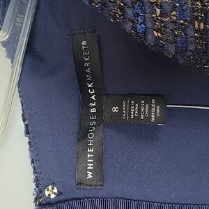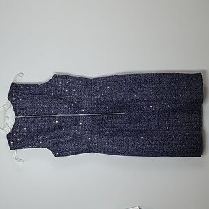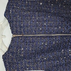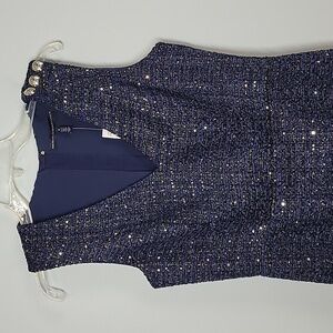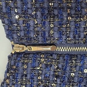 WHBM classic blue glitter tweed sheath dress Gold buttons on shoulder