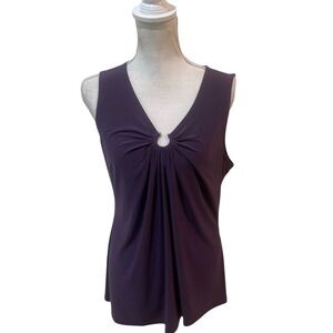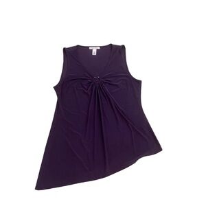 Photo. Says large but fits medium. Tank has a center ring with a ruched detail. Hem is asymmetric polyester blend. Euc.