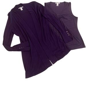 WHBM dark purple 2 piece tank & longline open front cardigan size medium