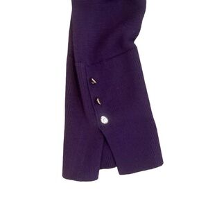 White House black market dark purple open front cardigan with button cuffs. A small flaw or open stitch- see