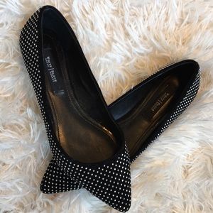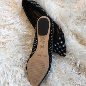 Gorgeous suede pointy toe medium width black flats with silver flat studs over entire shoe. Goes well with suits, skirts, pants, has a classic look. Comfortable and true to size at 7M. These will be your favorite flats! NWOT