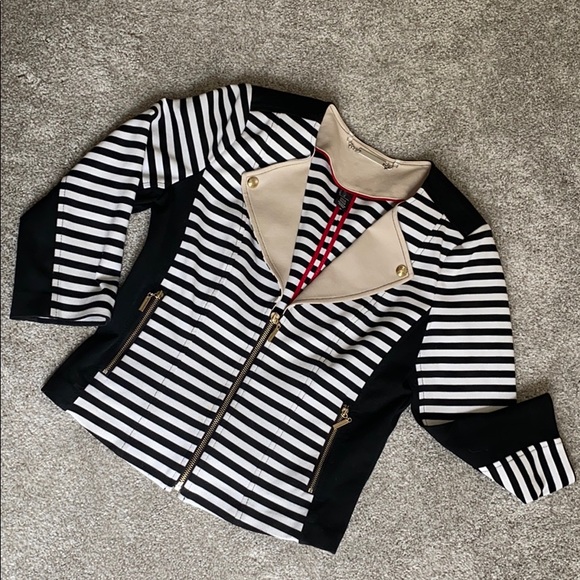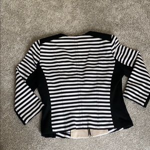 This cute little jacket was only worn once and fits my body more like a size 4. It’s marked as a 6. Very soft, comfortable fabric and perfect for office jobs!