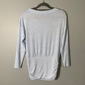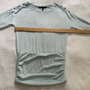WHBM light heather blue long sleeve button detail stretch pullover shirt top